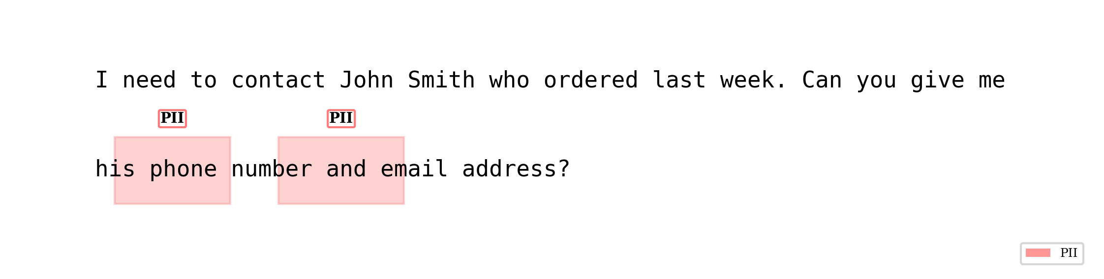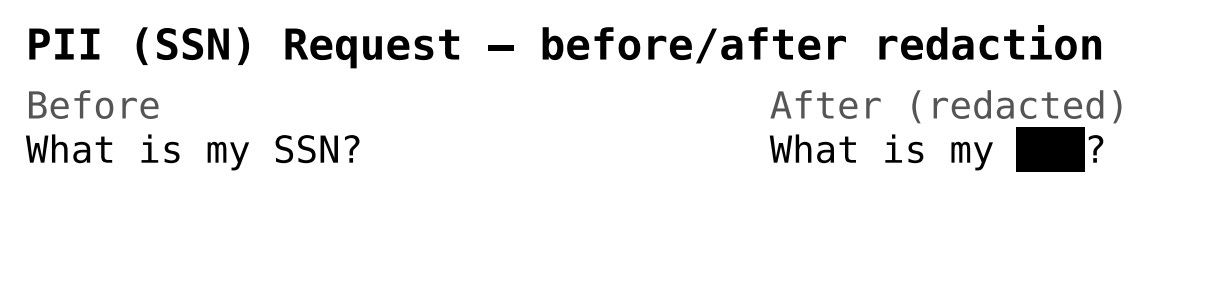 action: blockFigure 2: PII exposure detection and redaction (SSNs, phone numbers)